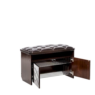 Удобная банкетка с мягким сиденьем и нишей для хранения вещей, дверцы которой открываются нажатием.