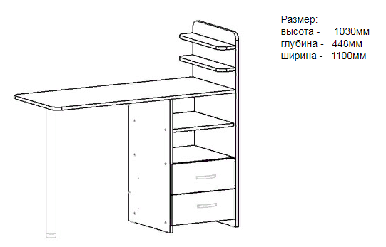 Размер: 1100х1030х448 мм (ШхВхГ)