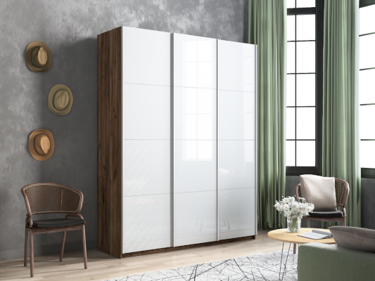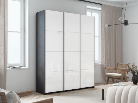 Серия «Прайм» отличается доступностью и функциональностью Навесные двери и лаконичная отделка фасадов создают прогрессивный дизайн. Подойдет тем, кто любит компактную и изящную мебель. Алюминиевые ручки и верхний ходовой профиль обеспечивают легкость и прочность конструкции. Многолетняя безупречная работа благодаря высококачественной немецкой фурнитуре Hettich. Прочная ПВХ-кромка толщиной до 1 мм защищает края от сколов и повреждений. Плавный ход дверей обеспечивает надежная система Hettich Top Line M. Дополнительно можно установить доводчики. Снаружи нет заглушек и винтов благодаря стяжечной системе крепления полок на флипперах, а корпус усилен эксцентриковыми стяжками. Навесные двери скрывают раздвижной механизм от глаз. Они надежно удерживаются в направляющих и не соскакивают. Каждая дверь поделена на 4 секции Секции расставляются в произвольном порядке, создавая новый дизайн фасада.