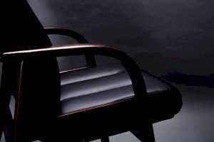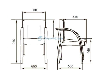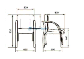 Кресло с низкой спинкой на деревянном каркасе на 4-х ножках.