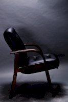 Кресло с низкой спинкой на деревянном каркасе на 4-х ножках.