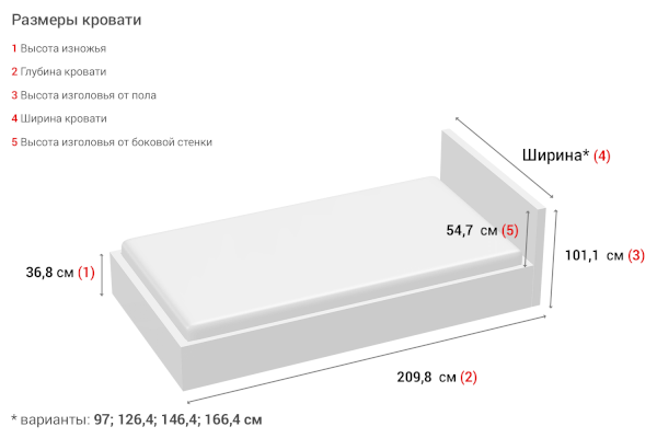 | Ширина спального места, см | 140 / 160 / 180 / 120 / 90 |