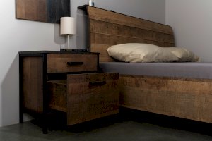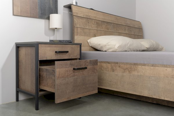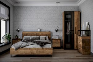 Лицевая фурнитура с тем же покрытием придаёт мебели индустриальную эстетику.