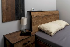 Планкованное изголовье с изгибом — два варианта конфигурации: с полкой и без неё.