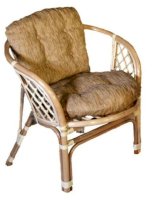 Удобное кресло из натурального ротанга с мягкой подушкой.