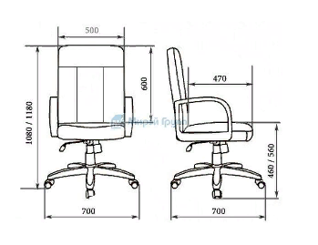 Кресло с высокой спинкой, с подлокотниками дугообразной не замкнутой формы с мягкими накладками обитыми в цвет кресла.