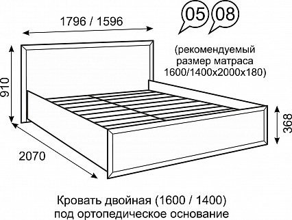 Кровать №5 двойная 1600 мм с ортопедическим основанием