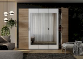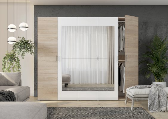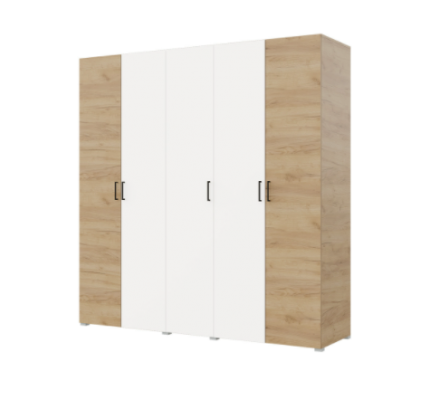 Шкаф 5-створчатый 2000 Комбинированный (3 створки с цветом фасада Венге, Белый или Сонома/2 створки Бетон или Крафт золото)