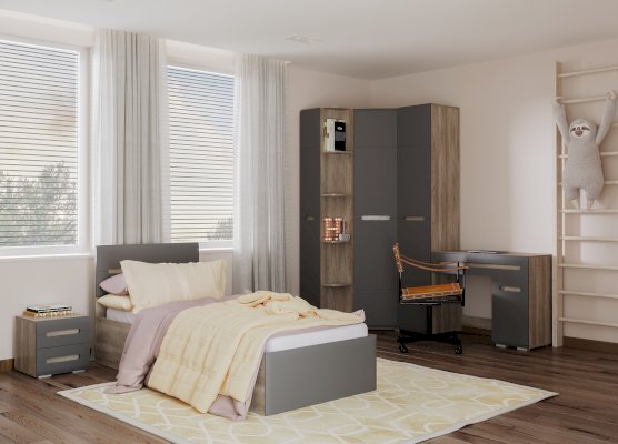 Дополнительным местом хранения вашего гардероба может стать пенал Наоми. Внутренне наполнение модели состоит из отделения для одежды на вешалках и двух полок. Фасад дверцы и корпус в цвете дуб каньон, позволит шкафу вписаться в любую комнату и украсить современный интерьер.