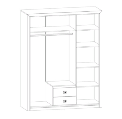 В отделении для одежды находится штанга для вешалок-плечиков и удобная полка, а также отделение с двумя выдвижными ящиками