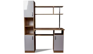 Пенал (дополнительная секция) превращает простой функциональный стол в полноценную рабочую зону, он вмещает закрытые полки для хранения документов и две ниши под дополнительную оргтехнику.