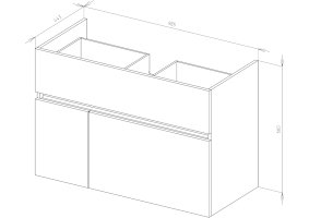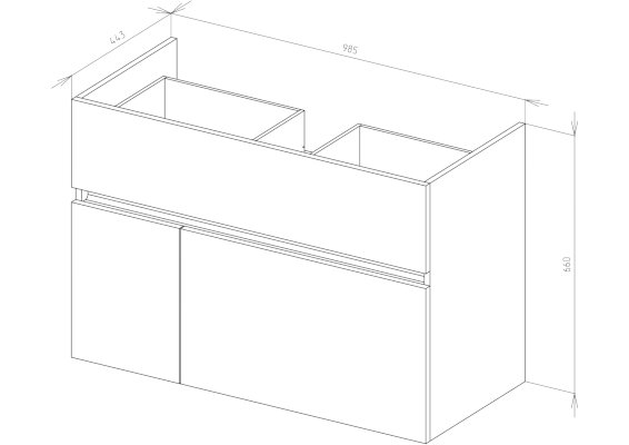 • 2 выдвижных ящика со встроенным доводчиком плавного закрывания, скрытого монтажа;