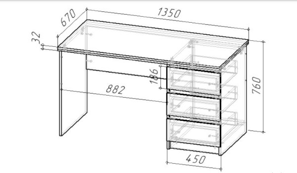 Ширина стола: 1350 мм