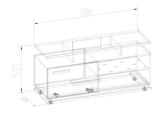 Чтобы сохранить легкость и простор в маленькой гостиной выбирайте Тумба ТВ малая. Низкая мебель сделает комнату просторнее, а стекло в сочетании с древесным декором создаст ощущение простоты. Комбинированный вариант открытых полок со шкафчиком с глухим фасадом отлично подойдет для размещения игровой приставки, дисков и геймпадов. Ширина тумбы позволит без труда разместить телевизор с диагональю до 44''. Регулируемые опоры позволят компенсировать незначительные неровности пола.