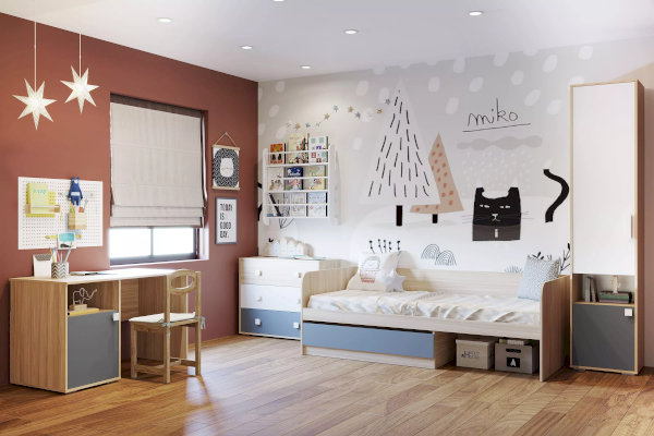 Шкаф-пенал из новой коллекции детской мебели Элиот представлен в нейтральных оттенках баунти, белого и контрастного маренго – цвета темной морской волны, которые отлично подойдут в комнату как девочки, так и мальчика. Благодаря универсальному дизайну шкаф легко впишется в любые современные интерьеры.