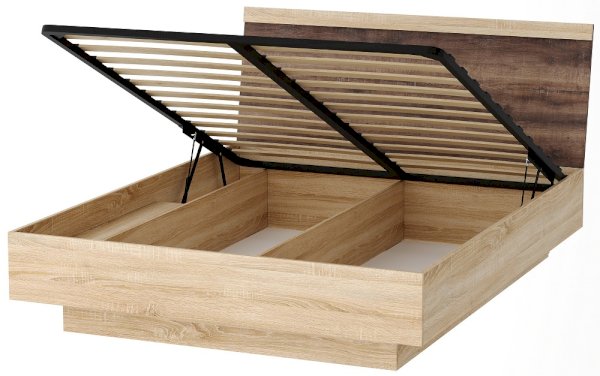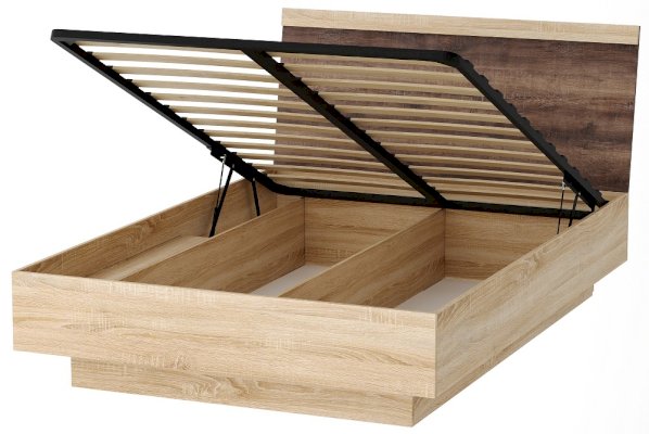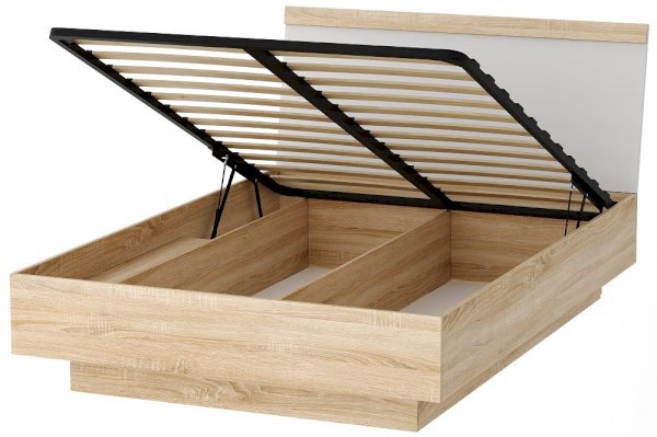 Кровать с ортопедическим основанием и подъемным механизмом Соната КРС-1400 Дуб Сонома/Белый глянец