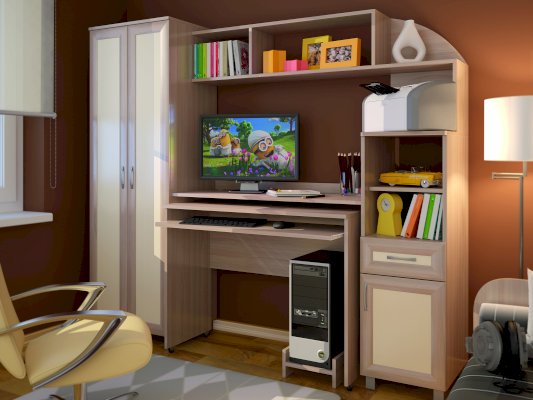 | Комплектация | выдвижная полка под клавиатуру / местодля принтера (техники) / надстройка / ниша под системный блок / тумбы |