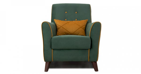 Декоративный кант на кресле, защипы на декоративной подушке, пуговицы на спинке