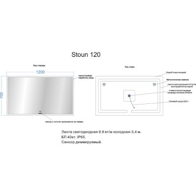 Размеры (ШхГхВ), в мм: 1200х30х700