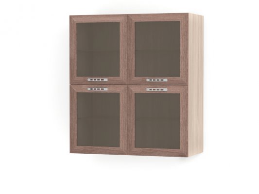 Данные изображения представлены в следующих цветах: корпус - Ясень Шимо светлый, фасады: рамка МДФ - Ясень Шимо тёмный + филёнка - Ясень Шимо светлый / стекло БРОНЗА.