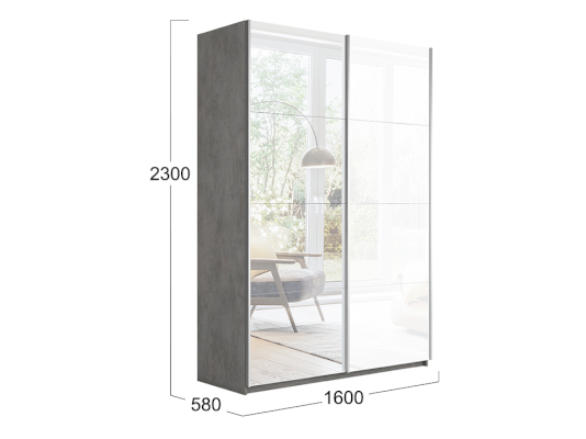 Фурнитура: Алюминиевые ручки дверей, алюминиевый ходовой профиль, полкодержатель флиппер, усиленные эксцентриковые стяжки