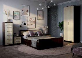 Лаконичная модель двухстворчатого шкафа Фиеста справится с размещением небольшого гардероба. При этом модель содержит достаточно вместительную зону с хромированной штангой для верхней одежды или одежды на вешалках, а также верхнее и нижнее отделение для хранения вещей. Изделие изготовлено из высококачественной ЛДСП в классическом сочетании цветов венге и лоредо.