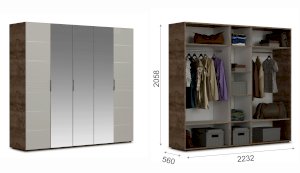 Современный распашной шкаф Джулия яркий представитель европейского минимализма. Это шкаф-конструктор, который позволяет выбрать подходящий вам размер, его наполнение и дизайн. На базе корпуса можно создать множество комбинаций: с зеркалами, с глухими глянцевыми фасадами, с порталом из ЛДСП 22мм или без него. Дополнительная опция – светодиодная подсветка монтируется в верхней части портала над каждой дверью. Шкаф выполнен из экологически безопасных надежных материалов. Декором белым глянцевым фасадам High Gloss служит фрезерованный рисунок «Волна» - подчеркивает зеркальный блеск, делает интерьер спальни особенным и неповторимым. Торцевые ручки из хромированного металла - яркий акцент фасадов. Наполнение шкафа включает в себя вместительные полки и отделения со штангой, что позволяет создать систему для хранения вещей различного назначения. Идеально компонуются со всеми модулями системы Джулия.