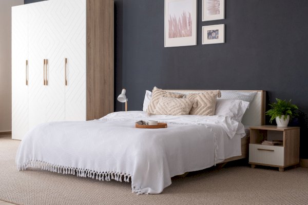 Незаменимый предмет мебели в спальной — это прикроватная тумба. Она позволит удобно и практично расположить предметы и личные вещи, необходимые перед сном и во время отдыха.