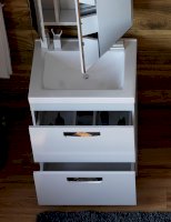 2 ящика; ручка врезная металлическая хромированная, опоры квадратные регулируемые.