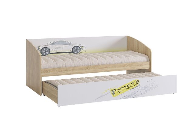 Дополнительное удобное спальное место или большой выдвижной ящик для хранения постельного белья и игрушек, на выбор, решать вам. Стильный принтерный рисунок на фасаде. Детская «Форсаж» - это стильная, современная детская, которая понравится каждому ребенку. Рисунок устойчив к истиранию и ультрафиолету.