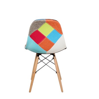 Сиденье и спинка обшиты тканью из лоскутов в стиле пэчворк (лоскутное шитьё).