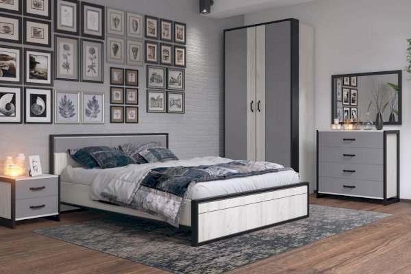 Кровать (1600х2000 мм) Дуб Крафт белый/ Серый шифер