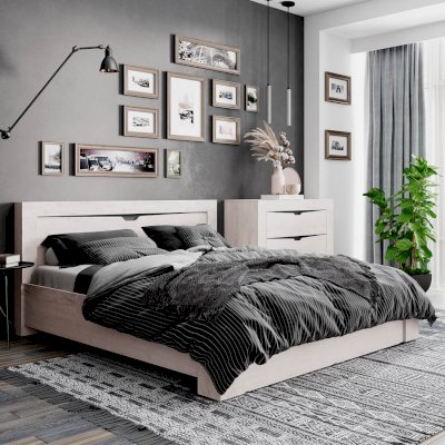 Особенностью двуспальной кровати «Леонардо» является сложная фрезеровка с уникальной геометрией выреза в изголовье, поддерживающей общую стилистику коллекции. В основании кровати, которое выглядит как эталон прочности и надёжности, предусмотрена установка ортопедического основания или настила под матрас.