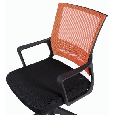 Спинка кресла выполнена из прочного сетчатого акрила с оригинальным "узором". Материал обладает высокой воздухопроницаемостью, легко чистится, способен подстраиваться под физиологические изгибы спины, при этом сохраняет форму и не растягивается. Залогом комфортного использования кресла также является эргономичная форма надёжного пластикового каркаса.