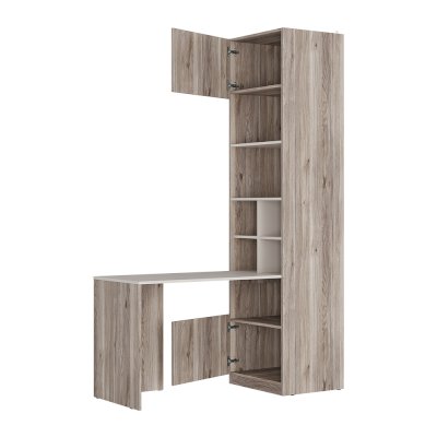 Стол-шкаф "Урбан" – это минималистичная стильная модель, которая подойдет для учебы и работы. Особенность данной модели – встроенный вертикальный блок с полками для хранения книг, документов и техники.