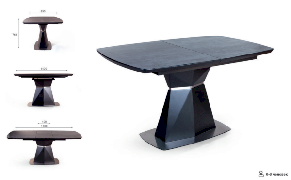 | Длина разложенного столика, мм | 1600 / 1800 / 2000 |