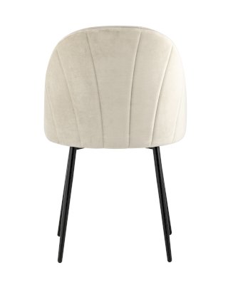 Обивка на спинке имеет вертикальную стежку в виде веера. Ножки изготовлены из металла.
