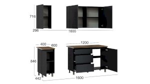 Глубина верхних/нижних модулей: 296/442 мм