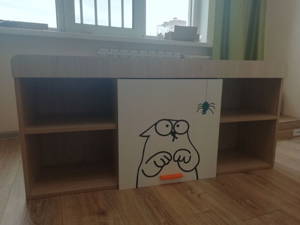 Мебель довольно качественная, заводское производство. Товар упакован отлично - видимо на заводе сразу фасуют. При распаковке минимум запаха и стружки древесной. Сборка своими силами без проблем - все отверстия на месте, крепежа с запасом. Белая плёнка, покрывающая фасады, весьма тонкая. Фактура чуть шершавая, напоминает бумагу. Следы грязных пальцев после установки вытерли влажной тряпкой. Но насколько её хватит в процессе эксплуатации и как будет мыться не понятно, влагостойкой не выглядит. Но для нас плюсов больше чем минусов. За такую небольшую цену полностью устраивает.