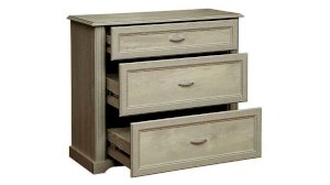 Классический комод с тремя выдвижными ящиками. Место локации – спальня, гостиная, холл. Верхний ящик хорошо подойдет для нижнего белья (если комод расположен в спальне), для документов (если модуль стоит в гостиной), для перчаток, ключей и счетов (если предмет мебели находится в прихожей). Средний и нижний ящики больше по размеру и более вместительны. Они отлично подойдут для постельного белья и для одежды, которую можно сложить, не боясь, что она помнется. Над комодом можно повесить зеркало – получится лаконично и функционально. Красиво, но без излишеств. Глубина в 400 мм делает изделие компактным и вместительным одновременно.