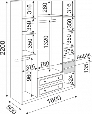 Наполнение шкафа выдвижные ящики / зеркало / штанга
