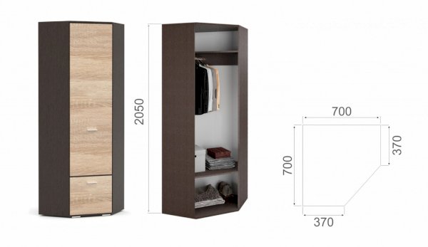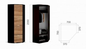 • Размер:ШХВХГ 600х2050х370 мм