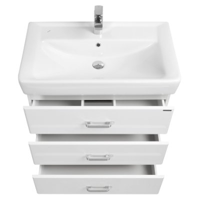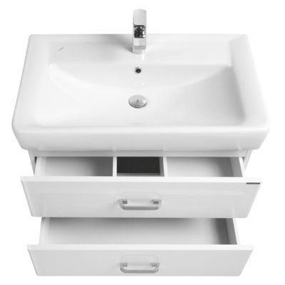 Тумба-умывальник Америна 80 Н Стильная, классическая, удобная – все это, и даже больше, можно сказать о замечательной коллекции мебели для ванных комнат Америна от компании Акватон. Сочетание актуального во все времена лаконичного дизайна и небольших габаритов отлично впишется в любой интерьер, будь то квартира или комната в частном доме.