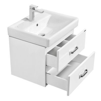 Для хранения вещей предусмотрено множество опций. К примеру, в тумбе имеются два удобных ящика, нижний подойдет для хранения больших предметов. Верхний ящик предназначен для хранения мелких вещей, и снабжен организацией пространства. Ящики в тумбе установлены на надежные металлические направляющие, рассчитанные на среднюю оптимальную нагрузку 25 кг.
