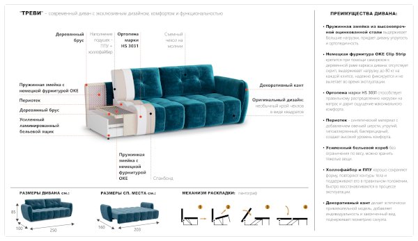 Современный диван с эксклюзивным дизайном, комфортом и функциональностью. Плавный, округлый силуэт, подлокотники с декоративным кантом, мягкое стеганое сиденье с глубокой посадкой и обивка создают необыкновенный уют и роскошную обстановку. Две большие подушки регулируют удобство посадки, после сидения быстро восстанавливают первоначальную форму. Диван оснащен надежным и легким в раскладке механизмом тик-так для каждодневного использования. Размер спального места соответствует полноценной кровати, большой бельевой короб для хранения вещей – приятное дополнение к нему.