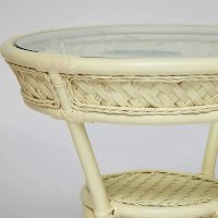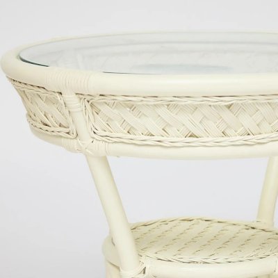 Изумительный террасный комплект мебели Secret De Maison из коллекции ANDREA, состоящий из столика и двух кресел, будет прекрасно смотреться в загородном доме, на дачной веранде, отлично подойдёт для отдыха на приусадебном участке. Уникальные плетеные узоры из натурального ротанга, выполненные вручную с использованием нескольких видов традиционного индонезийского плетения, добавят ноты изысканности и индивидуальности в ваш интерьер. Небольшой столик со столешницей из закаленного стекла, дополненный миниатюрной нижней полочкой, практичен и элегантен. Стекло обладает повышенной прочностью, долговечностью, способно многие годы не утрачивать своей первоначальной привлекательности. Два эргономичных кресла с мягкими подушками позволят удобно расположиться для комфортного отдыха. Тканевая обивка подушек проста в уходе, прослужит вам долгие годы, сохраняя свой первоначальный вид. Эта прочная и практичная мебель покрыта прозрачным матовым лаком, устойчивым к УФ-излучению, способна выдержать большие нагрузки, устойчива к повышенной влажности и долгие годы сохранит свой презентабельный вид. Комплект идеально сочетается с мебелью из коллекции ANDREA, поставляется в собранном виде.