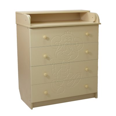 По вашему желанию верхняя крышка комода откидывается и предоставляет большую поверхность для пеленания младенца и массажа. Используемые в производстве комода материалы отличаются высоким качеством.