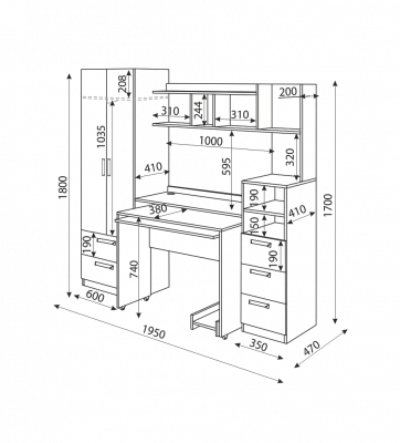 Комплектация выдвижная полка под клавиатуру / местодля принтера (техники) / надстройка / ниша под системный блок / тумбы