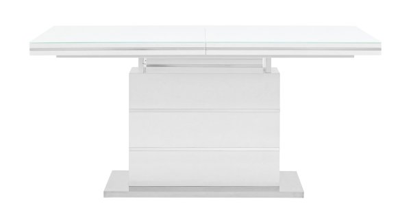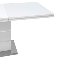 Раскладной обеденный стол белого цвета. Размеры столешницы 160*90 см. Дополнительно раскладывается до 215 см. Стол подойдет для любого современного интерьера.