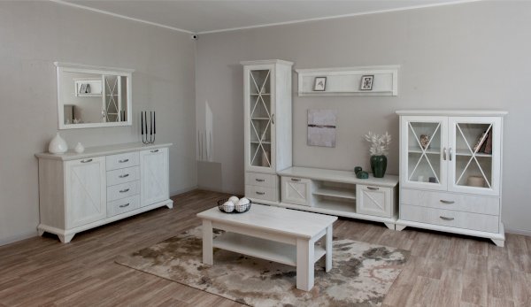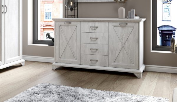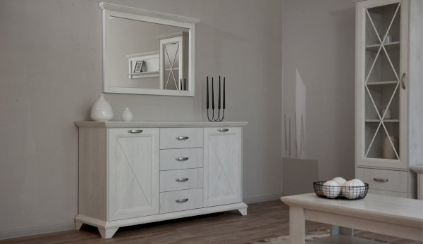 Вместительный комод Лорена в стиле неоклассика создает уютную атмосферу в интерьере гостиной или спальни. Белые фасады с фактурой и рисунком натурального дерева наполняют комнату светом, делают ее просторнее. Металлические ручки цвета состаренного серебра придают изысканность, а фигурные ножки и декоративный профиль крышки подчеркивают стилистику коллекции. В выдвижных ящиках на телескопических направляющих удобно хранить любые предметы одежды и личные вещи. Выполнен из экологичных материалов.